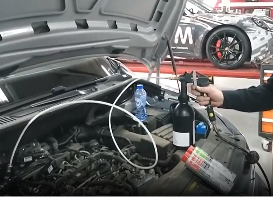 Je potrebné odpojiť prírubu, ktorá vedie z intercooleru do EGR. Na tuto prírubu, pred škrtiacu klapku, sa nasadí kryt s difuznym otvorom, kadiaľ je aplikovaná čistiaca a preplachová kvapalina. Po naštartovaní, drží tento prípravok samovolne, pretože na neho pôsobí nasávací podtlak. Cez dávkovacie zariadenie, ktoré je napojené na vzduchový kompresor, je do sania aplikovaná čistiaca zložka JLM extreme Cleaneru. Aplikácia prvej zložky trvá cca 30 min pri voľnobežných otáčkach. Potom je aplikovaná preplachová kvapalina JLM. Aplikácia trvá tak isto asi cca 30 min.