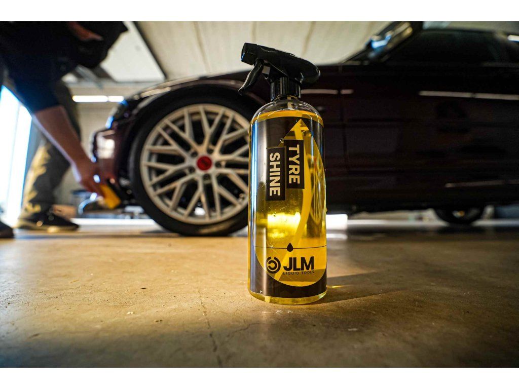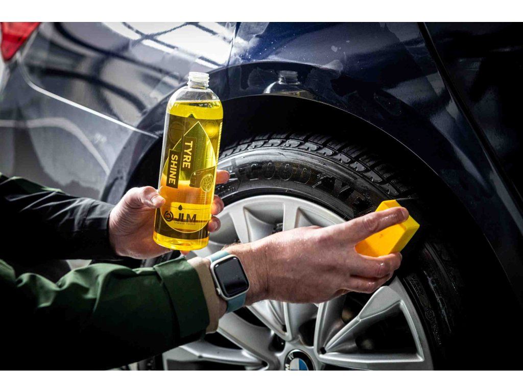 JLM Tyre Shine obnovuje matné a vyblednuté pneumatiky a gumové povrchy, vracia im ich pôvodný, sýty odtieň. Zloženie zároveň chráni gumu pred škodlivým UV žiarením a vplyvmi prostredia, čím pomáha predchádzať vysychaniu a praskaniu. Súčasne vytvára odolnú ochrannú vrstvu, ktorá udržiava obnovený vzhľad po dobu niekoľkých týždňov.